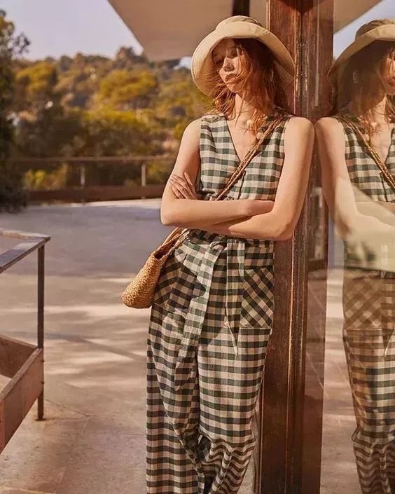在夏季选择一款格纹图案的套装搭配何尝不是一种修身显瘦的穿搭方式,在套装的版型上可以尝试一些无袖设计,加以V字领口,在视觉上与下身宽大的裤腿形成反差效果。除了一些套装搭配外,连体衣或连体裙也很值得考虑哦~好穿百搭,赶紧尝试起来吧!
