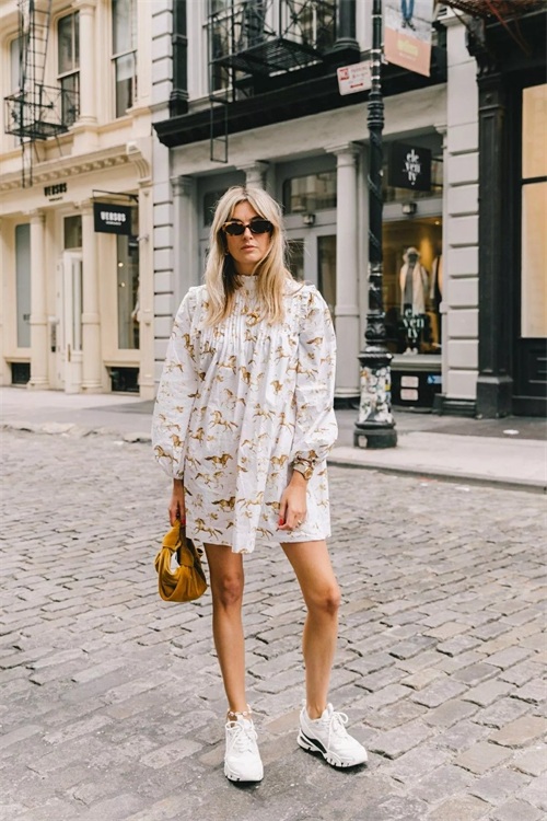 在今年所有的流行裙装当中,小编最推荐的还是碎花裙。关于碎花裙的版型款式还是很多的,但是这样的图案设计,能有效的遮挡身材上的缺陷同时不减甜美俏皮的效果。对于腿部线条比较匀称纤瘦的身材,可以选择一款长度在大腿三分之一处左右的碎花裙并加以收腰设计。