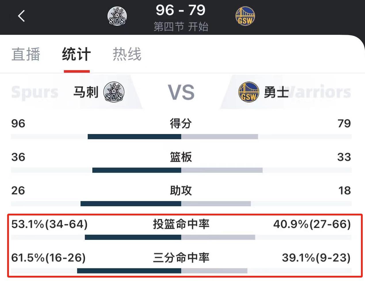 今天勇士的对手是马刺,马刺是个什么实力的球队呢?是一支已经提前20场比赛就确定无缘季后赛的球队,是一支在本赛季曾经遭遇过18连败的球队,勇士让这样的一支球队三节投出了61.5%的投篮命中率,我请问勇士的防守在哪呢?