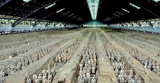 埋藏地下两千多年的秦始皇兵马俑军阵