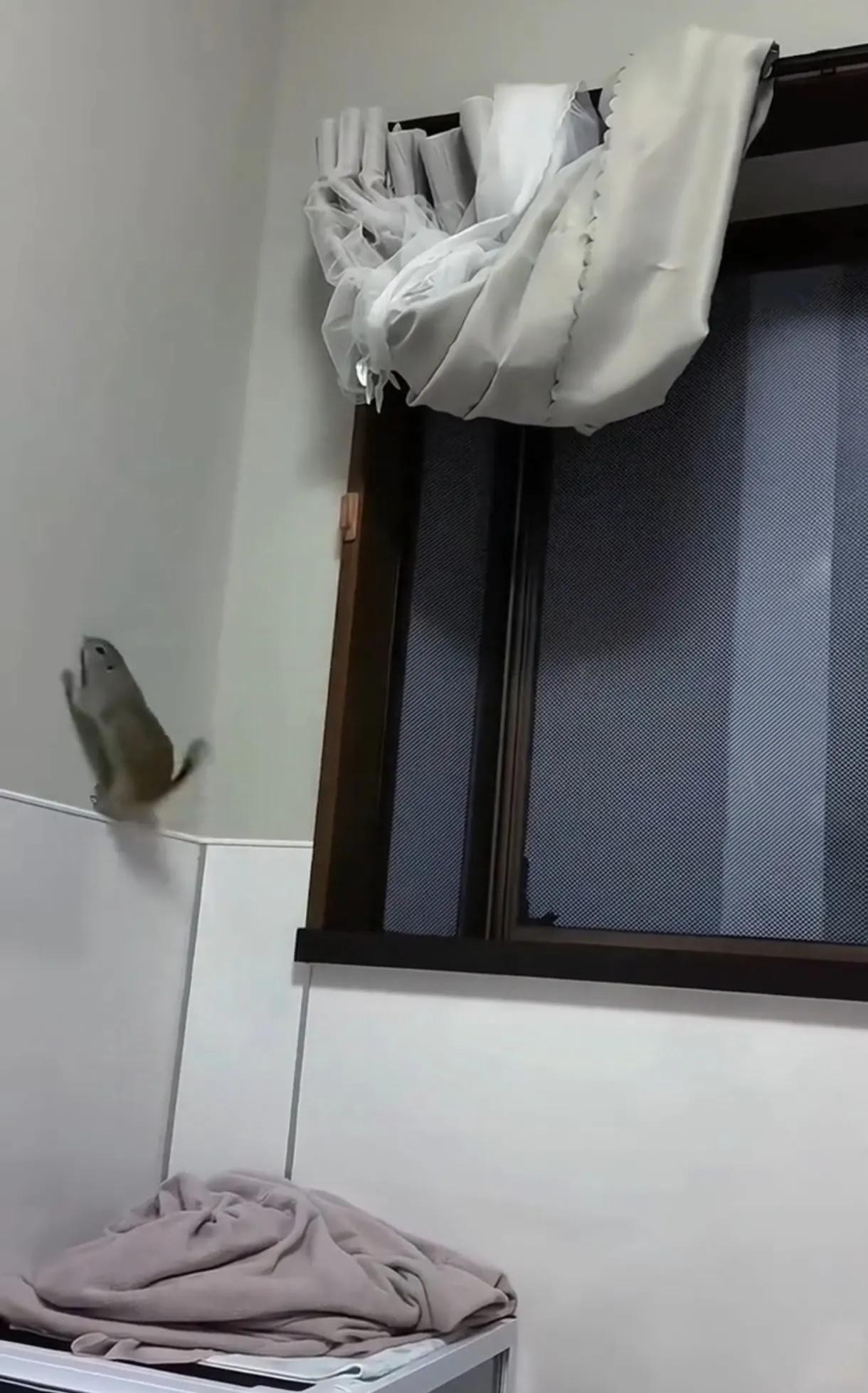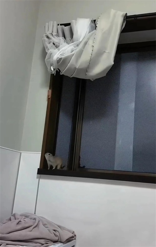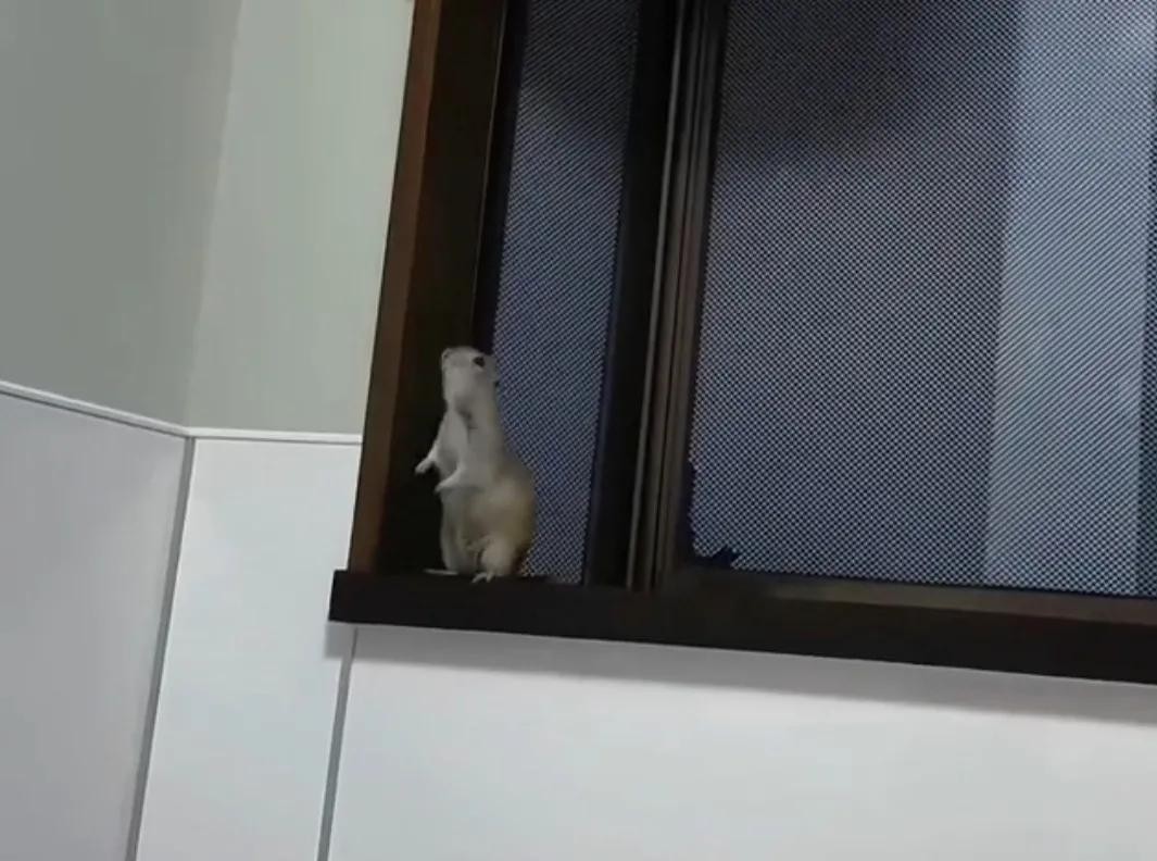据小伙说,当时已经是晚上9点过了,他突然听到他家卫生间里有异常的动静,于是他打开卫生间门看了看,然后就看到有个像老鼠的动物从打开的窗缝爬了进来,还跳了一下,落到柜子上后还一个劲地扒拉,好像想爬到墙上去。