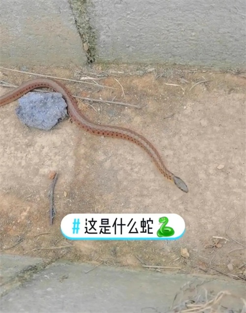 从他拍的视频看,这条蛇的体型比较小,目测体长半米左右,粗细也就跟四根筷子捏在一起差不多,通体呈红色,脑袋和尾巴红色不太明显,呈乌青色,身上有密集的点状斑纹,脑袋呈椭圆形。