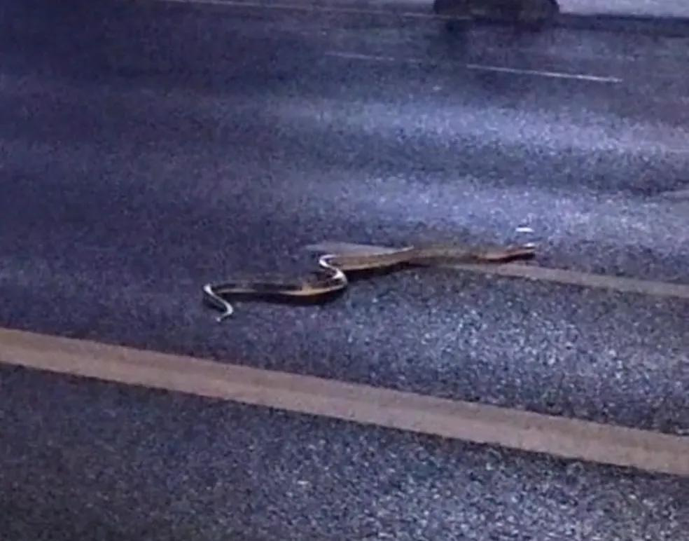 据这位网友说,他当时是在大街上看到这条蛇,也不知道这条蛇怎么会跑到城区的大马路上,出于好奇,他就拍了一段视频。