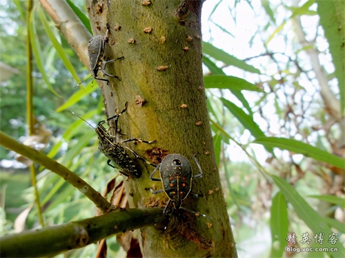 (2)生物防治:利用自然规律食物链的方式实现臭屁虫数量减少,臭屁虫的天敌是丰富的,已知的有黄猄蚁、寄生蜂、螳螂、蜘蛛等多种,应加以保护利用。