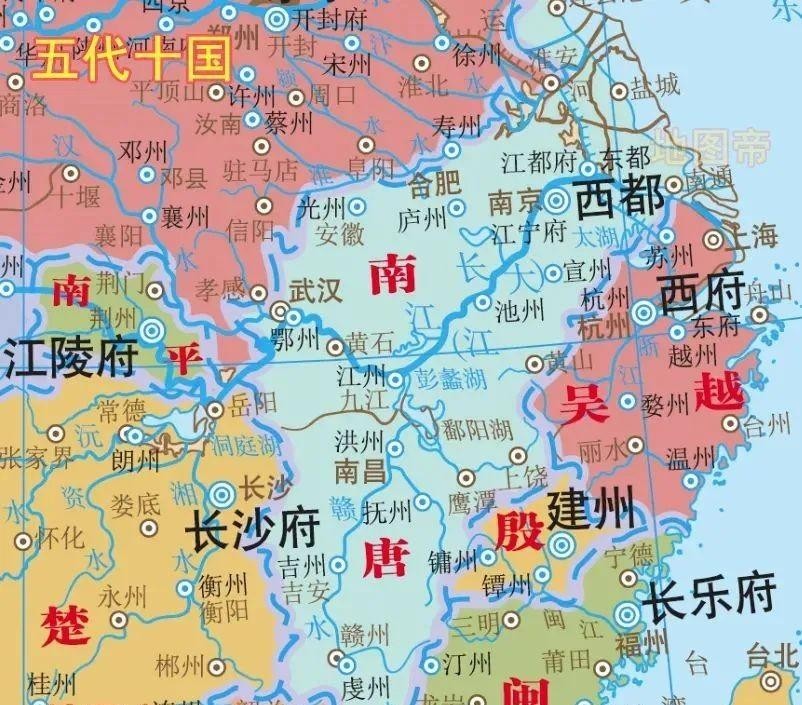 南唐则是十国之一,存在于937年至975年,由徐知诰(即南唐首位皇帝李昪)所建立。十国指的是五代时期华南和西南地区的十个割据政权。南唐在经济和文化上比较发达,其统治范围主要是长江下游一带。