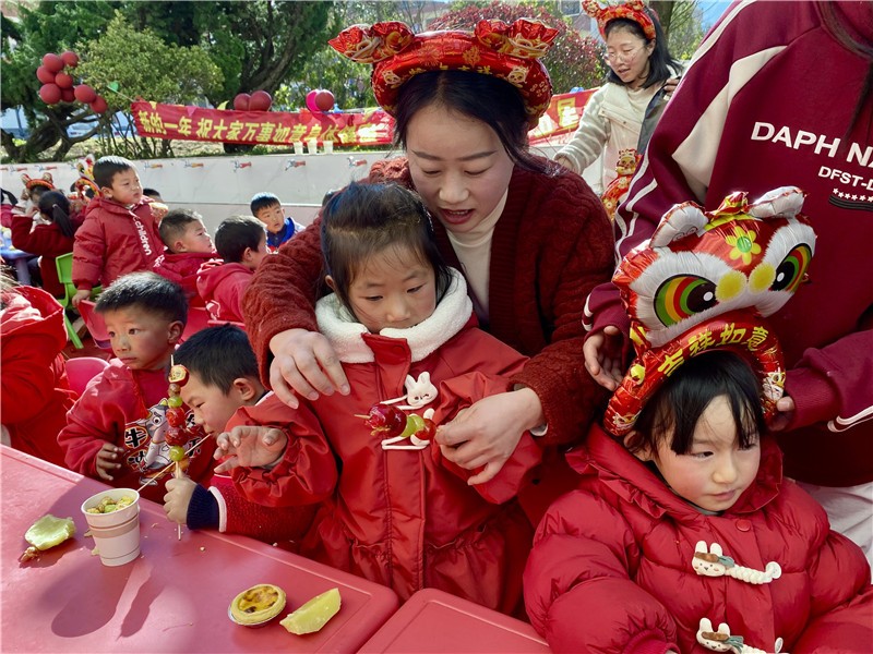 活动现场,幼儿们穿着喜庆的服装,一起高歌《新年好》,一起舞动《aram samsam》,然后在音乐中制作糖葫芦、写福字、分享美食,体验了不同形式的年味活动;幼儿甜美稚嫩的声音、活泼欢快的动作,可爱灿烂的笑容、大家都沉醉在浓浓的新年氛围中。幼儿的心愿、老师的希望、家长的期盼,此时此刻都融入在这红彤彤的环境氛围中。