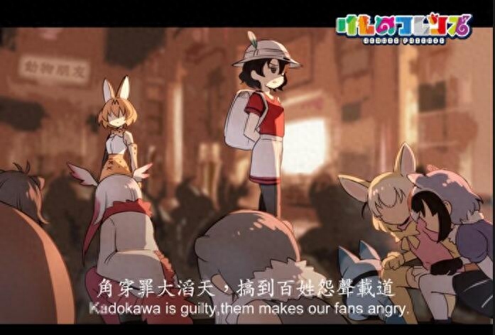 《兽娘动物园》在今年引起了社会现象是无可争议的,因此有很多句《兽娘》的流行语上榜。“就算有野兽,也没有被排挤者”( けものはいても,のけものはいない)出自《兽娘动物园》OP《欢迎来到加帕里公园》。因为歌曲十分魔性,在播出的时候这首歌便火了。而日语中“野兽”( けもの)和“被排挤者”( のけもの)也有音近的梗,所以令人印象深刻。而让这句话登上神坛的原因还是角川把《兽娘动物园》的动画制作团队卸磨杀驴的事情。“就算有野兽,也没有被排挤者”对应着角川的做法,显得十分讽刺。如果动画制作团队是“被排挤者”的话,那么“角川”就连野兽都不如了。
