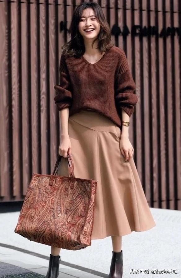 咖色对许多黄黑皮的女性来说绝对是一个友好色。它属于一个中性色调,温暖而又不失雅致,与其他颜色相比,想把咖色穿好十分简单,搭配上有着繁杂图案的单品或者是只使咖色占用穿搭的一小部分,都会穿出优雅感。