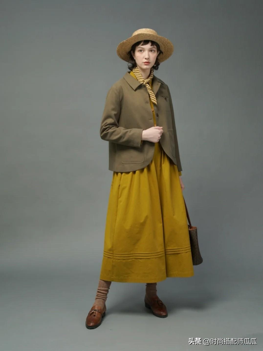 自带复古感的姜黄色,在单穿时并不能将它的复古感展现出来,并且单穿时,色块的分布反而会显得尤其明显,这个时候自己身材上的宽窄胖瘦反而会叫人一眼看出,穿搭看起来毫无层次感。因此想要穿出姜黄色的复古感,叠穿是必不可少的。