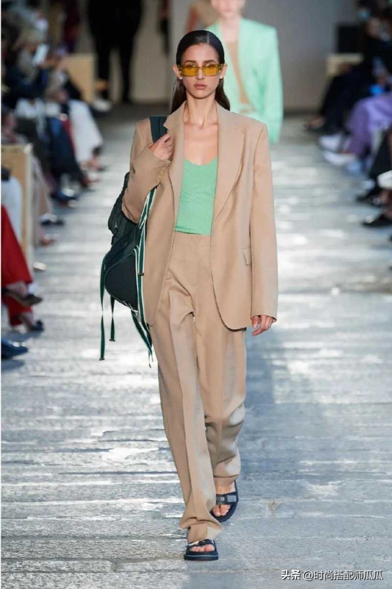这种穿法最大的好处就是穿搭的颜色在贴近肤色的同时,亮色的存在还能提亮肤色,增加整体穿搭的时尚感。