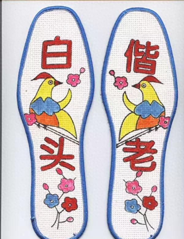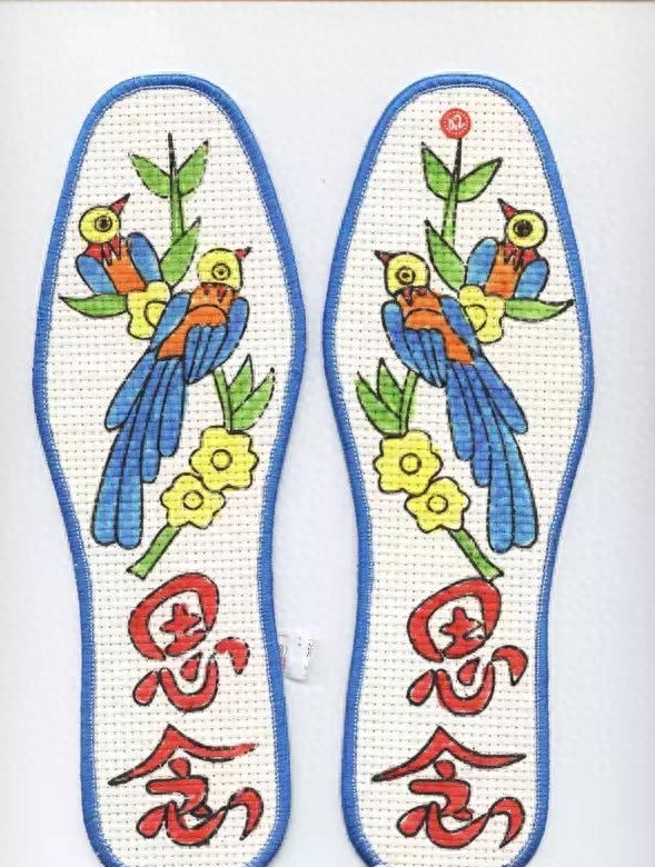 在以前,十字绣鞋垫是成为许多少女向情人敞开心扉,表达爱情的一种信物,同时,这些鞋垫具有很好的收藏价值和观赏价值,不失为旅游和馈赠佳品。它以民间生活和对美好生活的向往为题材,以变形、夸张的手法和精细、别致的刺绣技法再现了劳动人民的智慧。