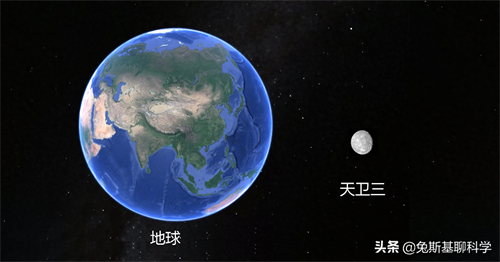 天卫四是距离天王星最远的一颗卫星,它是一颗由岩石和冰组成的天体。天卫四的名字叫做奥伯龙。它的直径大约是1524公里,大约是地球直径的12%。如果将天卫四放到地球面前就会像下面这样。