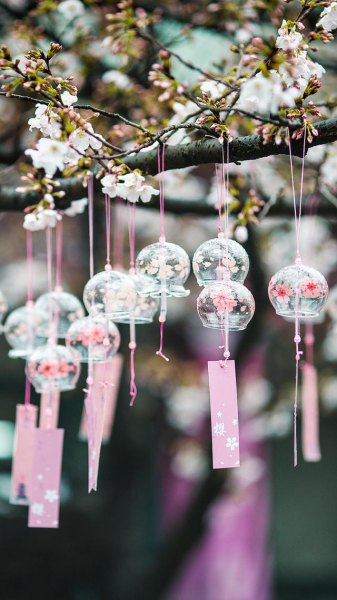 2021年3月21日,江苏无锡,鼋头渚樱花盛开,许愿瓶在风中摇曳。