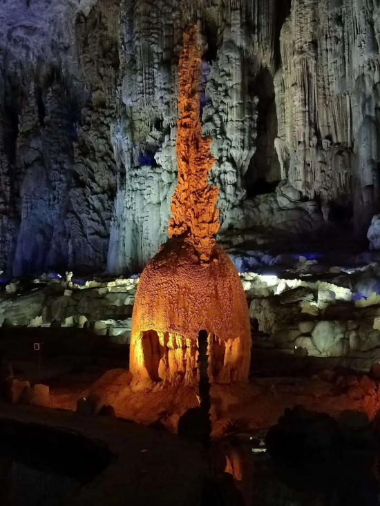 织金洞位于贵州省毕节市织金县,中科院下辖的《中国国家地理》等国家级地理研究部门对其赞誉极高,称其为“中国溶洞之王”,“黄山归来不看岳,织金洞外无洞天!”。织金洞长约6公里,最宽处175米,相对高差150多米,空间非常宽阔。洞内分上、中、下三层,遍布石笋、石柱、石芽、钟旗等四十多种堆积物,形成千姿百态的岩溶奇观。洞内道路纵横交错,石峰四布,流水、水塘、地下湖散布其间,景点众多,因此被誉为“溶洞奇观”。