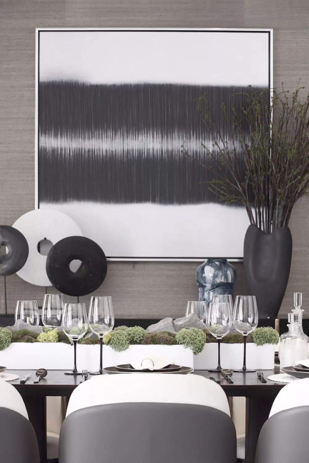 郑板桥曾说:“室雅无须大,花香不在多”,恰能形容本案的客餐厅——意境的营造结合园林,将自然、山川放入自家庭院,日日把玩,何其幸福!