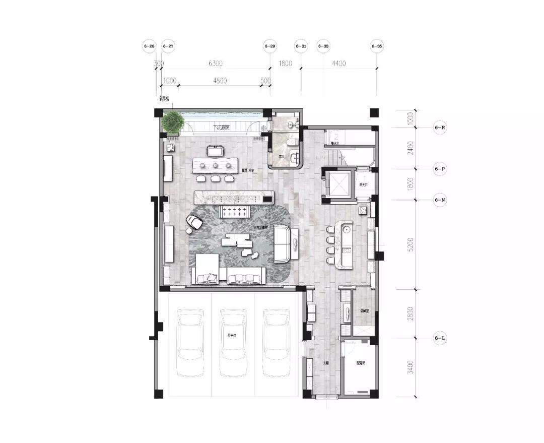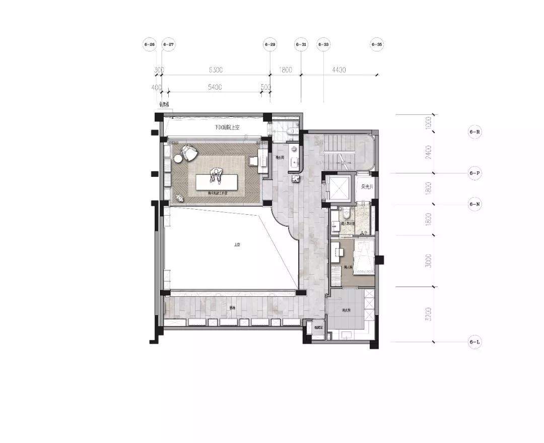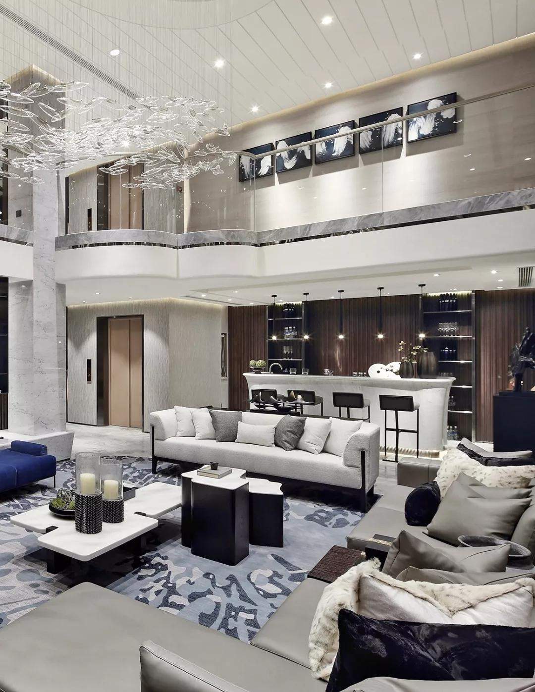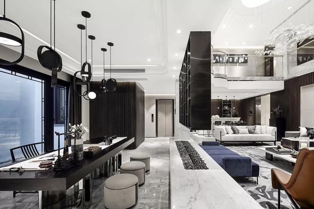 就地下生活空间而言,设计不只是关注会客的基本功能,更把目光投向未来室主人的生活方式。将主要空间留给社交形生活方式设计的会客厅,会客厅又巧妙地将吧台区与书房品茗区串联。