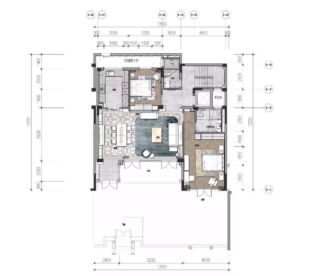 长辈房连接室外庭院,空间通透明亮,饰以端庄稳健的大地色,诠释出悠然闲适,平静的生活态度。“落日庭院中,春风啜茗时。”在静逸雅致的庭院中平和身心,品位生活中的闲适情趣。