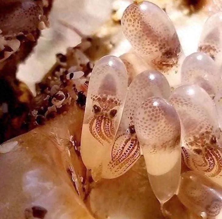 10.章鱼宝宝正在孵化中。原来章鱼卵长这样,大开眼界。愿章鱼宝宝们在海底世界快乐成长。