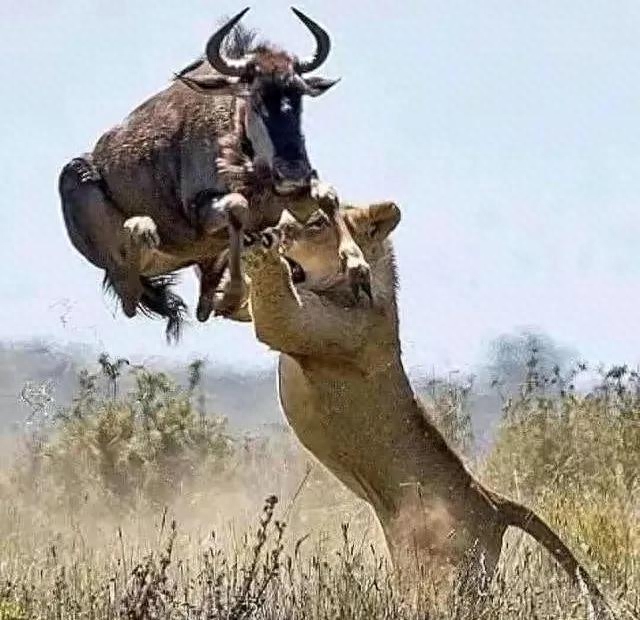 34.这是谁的部将?跳这么高?这么猛。这是角马。它锋利的角,拥有杀死狮子的能力。非洲大陆很多狮子都被角马刺死了。