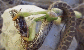3.中华大刀螳螂捕食小蛇。不得不说,中国文化博大精深。写完“中华大刀螳螂”这些字,一只威武霸气的螳螂已浮现在我的脑海。