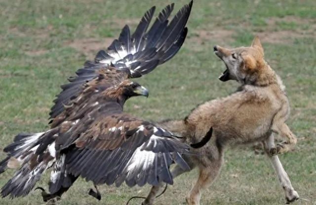 25.金雕捕狼,狼吓得嗷嗷直叫,如丧家之犬。金雕的攻击力太强了,它可以将狼提起来。金雕报复心极强,甚至会报复伤害它的人类。