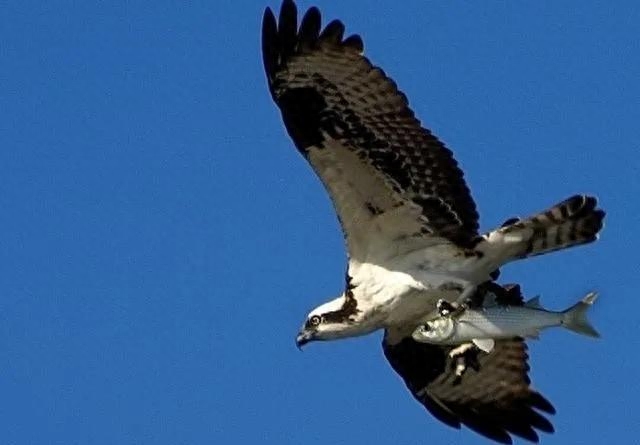 22.鹗。鹗的爪子灵巧又不失力量,可以将鱼牢牢抓稳。鹗很聪明,它携鱼飞行时会调整鱼的姿势,让鱼的方向与自己的方向保持一致,达到减少空气阻力的目的。