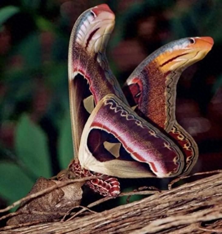 15.蝴蝶伪装成了蛇的样子,伪装得翊翊如生,令人惊叹。这蝴蝶,青蛙见了会害怕,老鹰见了是不是很开心呢?毕竟老鹰爱吃蛇。