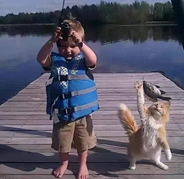 11.小男孩在钓鱼给小猫吃,真美好啊。鱼说:“美好吗?我不觉得!你们清高,你们拿我做友谊的见证……”