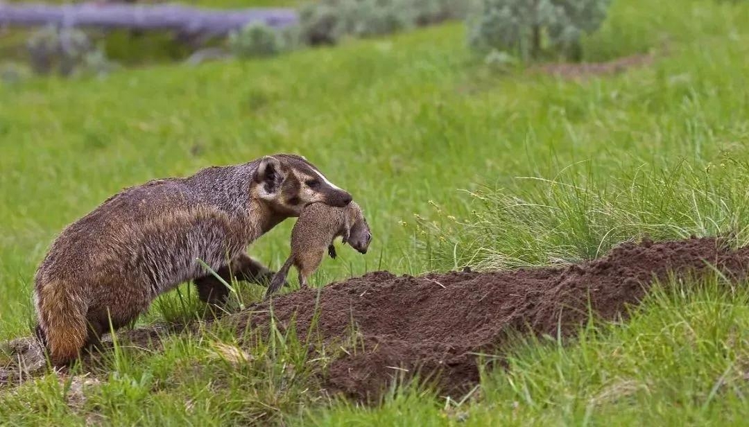 30.美洲獾成功捉鼠。美洲獾很聪明,懂得与狼合作。美洲獾属鼬科,鼬科都是狠角色。美洲獾可以驱赶美洲狮。