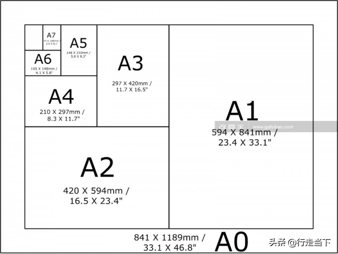 Tips:A0相当于两张A1,A4分成两半就是2张A5;每个序号的纸对半开,就是下个序号的纸