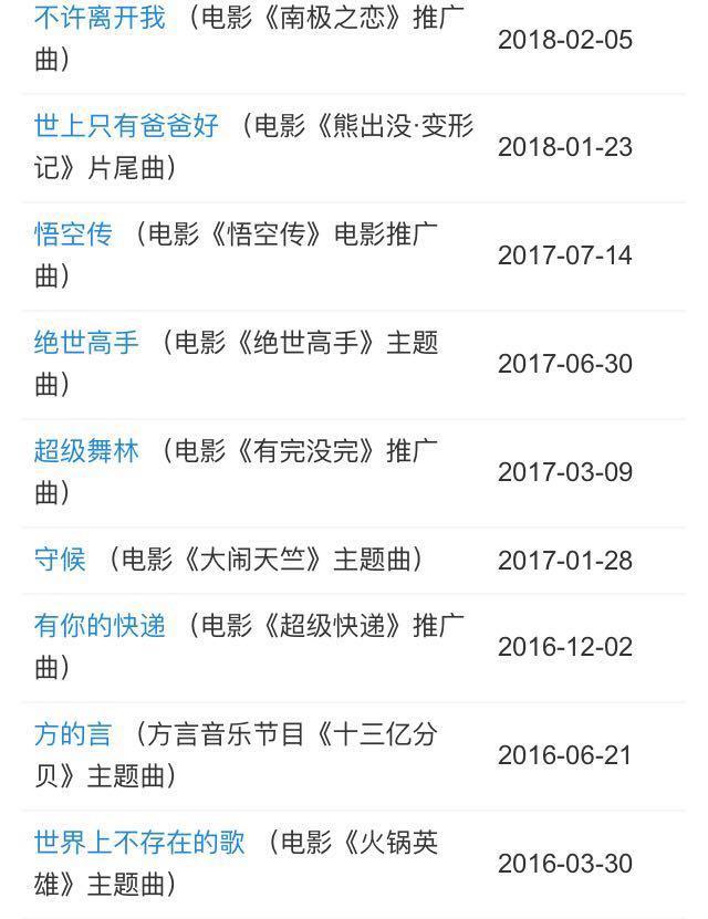 除了写给别人的歌,赵英俊自己的单曲基本都是给各大电影,节目的宣传曲、主题曲,林林总总加起来也有12首,可以说这几年的电影主题曲都被赵英俊一个人承包了。