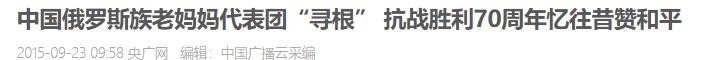 央广网2015年9月23日——中国俄罗斯族老妈妈代表团“寻根” 抗战胜利70周年忆往昔赞和平