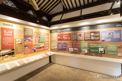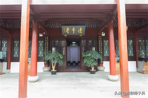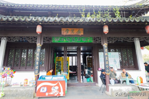 芳草居为单层歇山顶的小木屋,与普通歇山顶建筑不同的是大门开在山墙侧。入口悬“芳草居”匾额,大门两侧有联:“当户修篁鸣碎玉,掠波轻燕衔红英。”如今辟为”东方商甬“的展览馆。