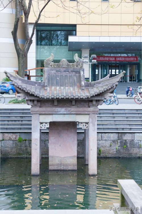 水中小亭子下面有一块“水则碑”,水则碑始立于南宋开庆元年(1259年)。由沿海制置使吴潜督造。上面刻有一个“平”,是古代宁波府各乡调剂水源所谓的标尺,也是浙江省最早的水文观测站。