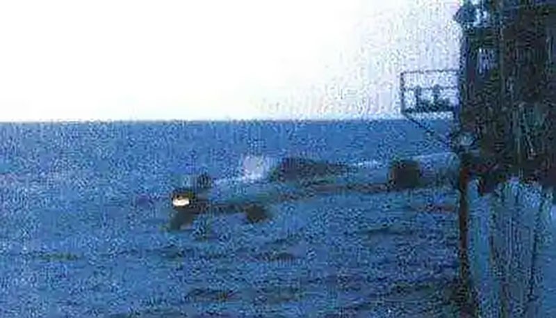 ▲导弹命中谢菲尔德号的瞬间