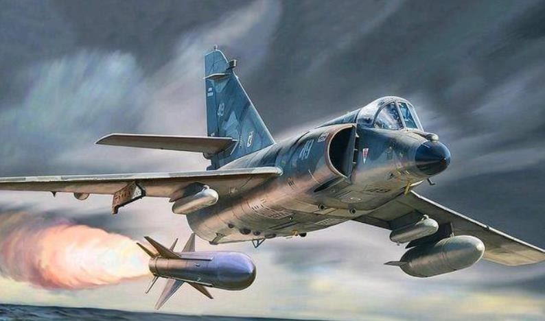 ▲发射飞鱼导弹的超级军旗,导弹发射后一边的副油箱也得及时抛下