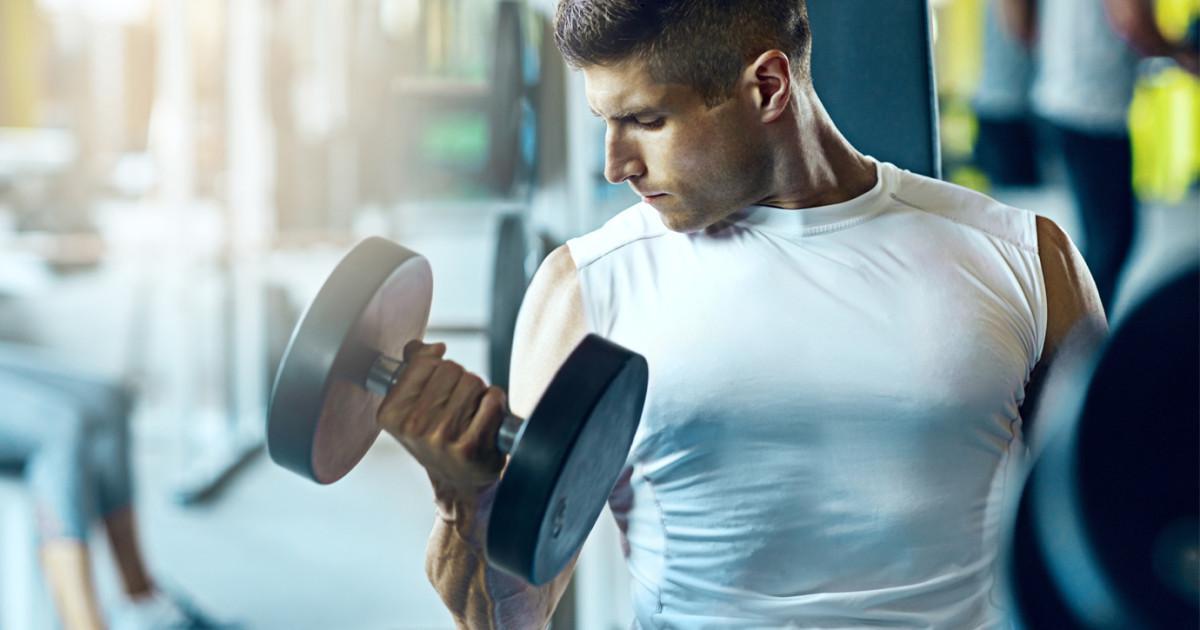 2.站姿哑铃弯举 4组 12-12-10-10RM 组间歇90秒