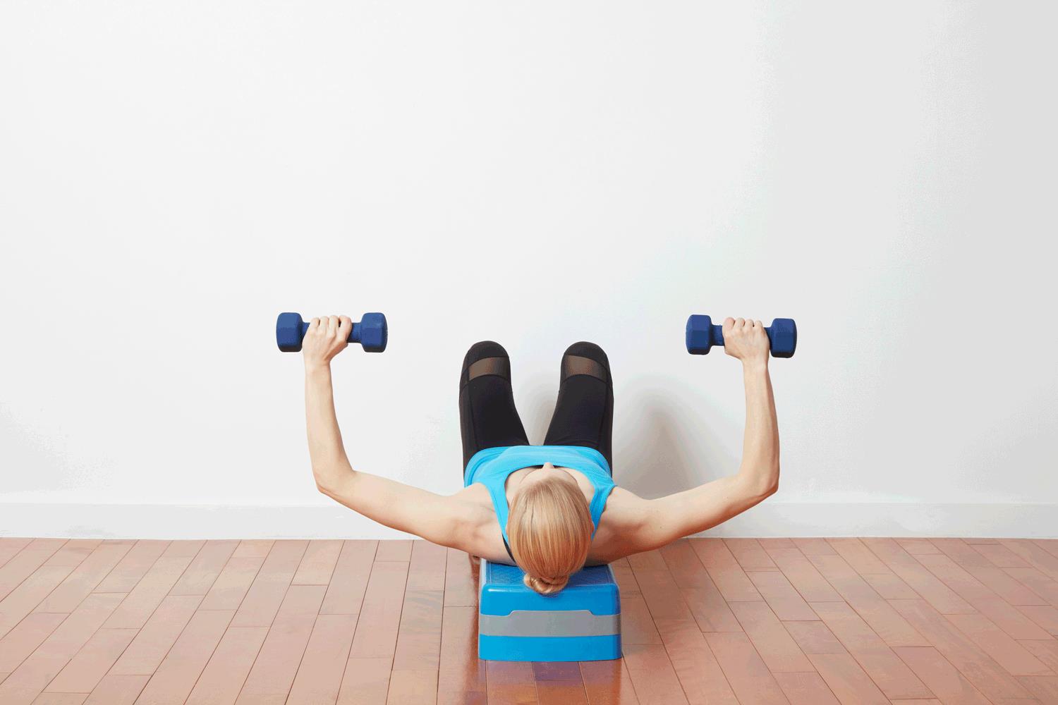 所需设备:各种重量的哑铃、长凳(如果没有,可以使用瑜伽垫)