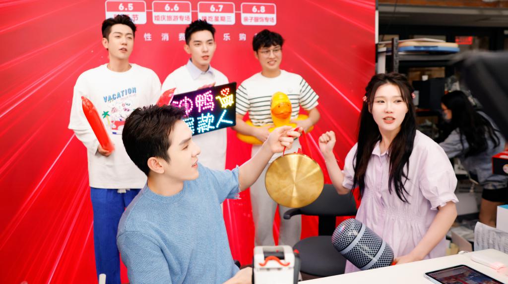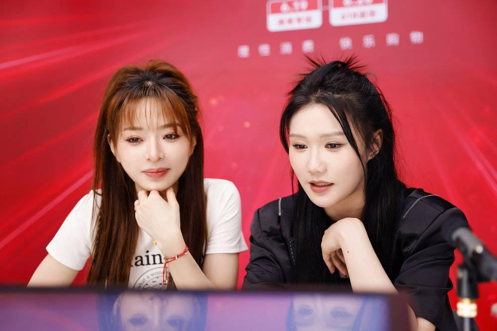 庆字姐(左)和旺旺(右)在李佳琦直播间。图片来源:视觉中国