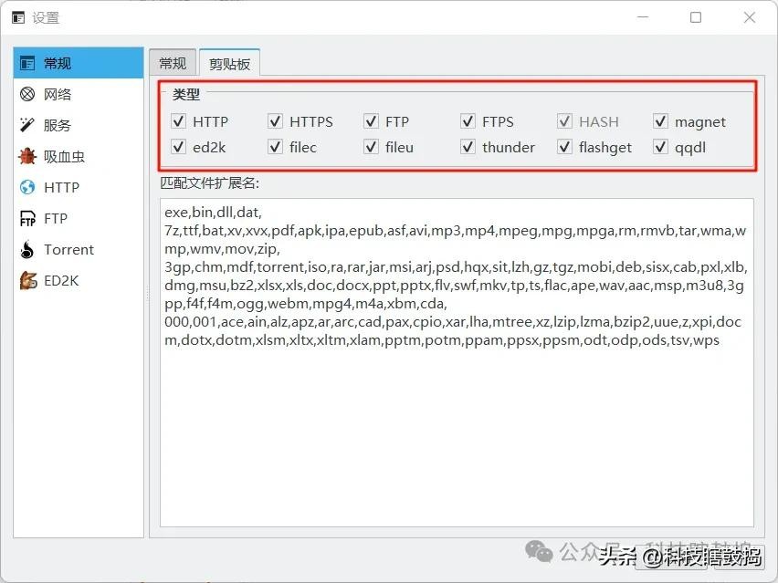 3、它支持下载的类型很多,包括常见的直链http、FTP、磁力种子,而且还有某雷链接,甚至还有不常用的电驴、以及更少用的QQ旋风链接和flashget链接。可以说基本囊括了网上所有能见到的下载模式,见下图。