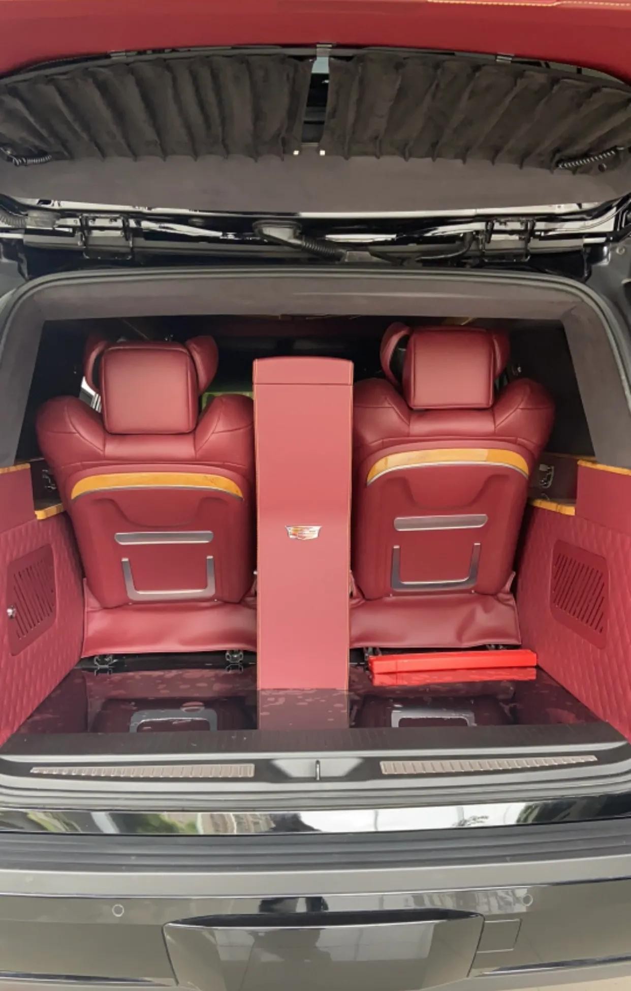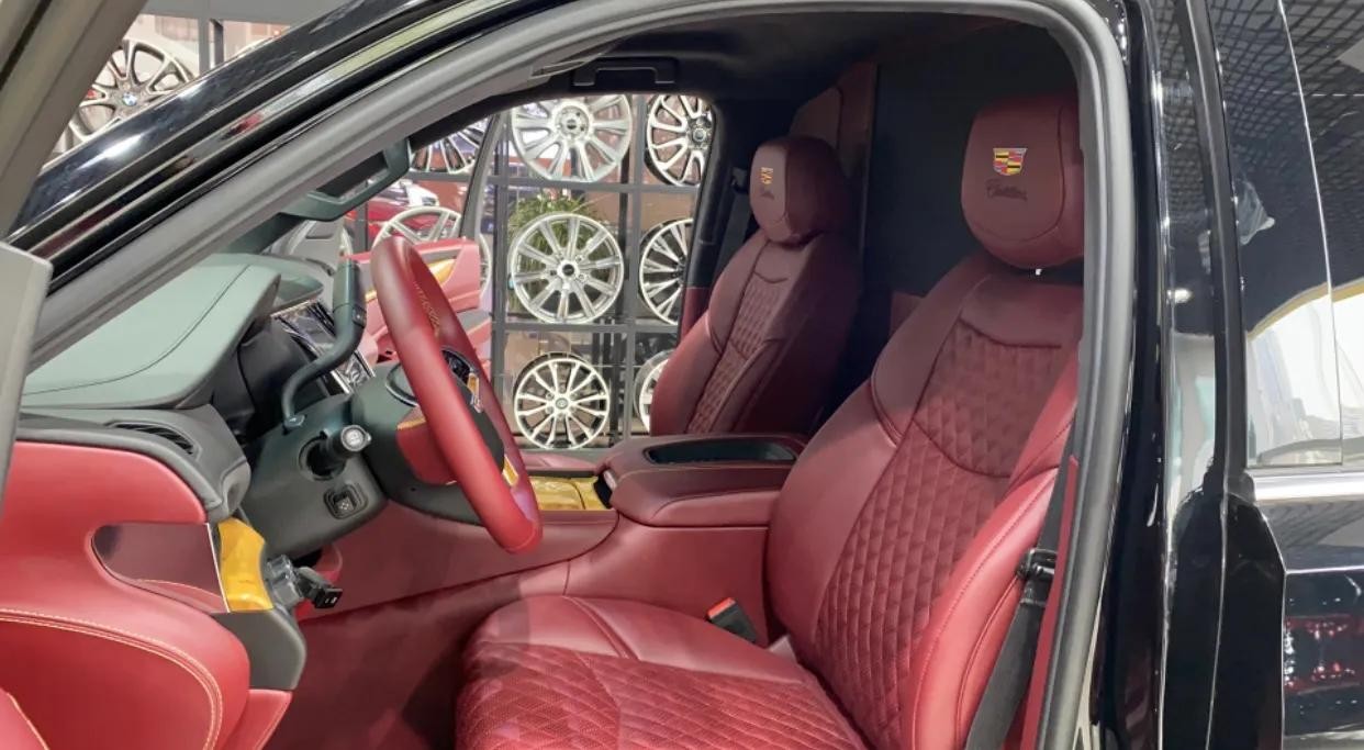 车辆配置:配置:新款凯迪拉克凯雷德总统一号,加长5.9米,黑色,6.2L V8 发动机,10速变速箱,4轮驱动,自动调节悬挂系统,电子转向系统,拖车系统,前舱bose环绕立体声音响,主动噪音消除,收音机、CD、MP3,高清卫星收音机,卡迪拉克CUE系统及8寸导航屏幕,蓝牙系统,12英寸可构建显示及驾驶员信息中心,抬头显示,皮质方向盘,加热方向盘,方向盘带控制中心,按键启动,遥控启动,无钥匙方便进入,12方向皮座椅,加热、通风前座椅,第二排座椅加热、电动可翻倒,四门电动窗、前排可一键上下,前后独立控制舒适空调系统,电动可折叠带加热及转向灯的反光镜,雨量感应雨刷,自动远光前灯,前后停车辅助,电动掀起和划动天窗,22寸铝合金轮毂,电动可调整开启角度尾门,双级开启气囊,头胸部气囊,自动稳定带循迹系统,胎压监控,环影系统,防盗系统,盲点警示,后车流警示,驾驶员警示包。后舱6向高级德国Napa真皮航空座椅带加热及气动按摩,舒适腿托,4区域高级气氛灯,可独立控制,梦幻满天星,V型海燕日光模拟灯光效果,梦幻蓝夜间气氛灯,7寸智能中央控制触摸屏,控制后舱所有电子及电动设备,高级隐藏式秘书座椅。