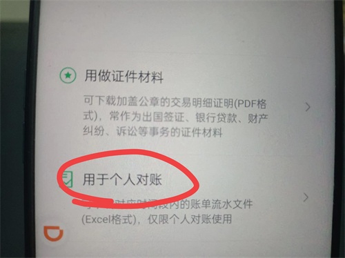 点击“用于个人对账”,(如上图所示)