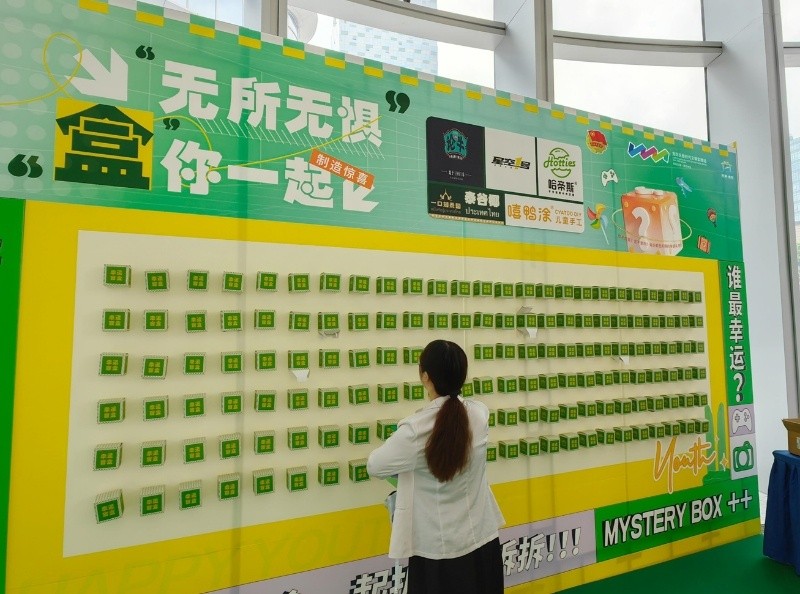 最为激动人心的环节莫过于抽取盲盒了。每一位集章的青年员工都有机会抽取多个盲盒,里面装着精美的礼品,既有实用的办公用品,也有充满创意的生活小物和周边商场的商家代金券。