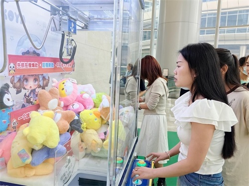 欢声笑语此起彼伏。趣味投篮区,参与者们或瞄准篮筐,或轻松一跃,篮球在空中划出一道道优美的弧线,精准入框,赢得阵阵掌声。翻滚梦想区,大家巧妙控制力度和方向,让瓶子在赛道上快速滚动,最终稳稳停在指定位置,赢得一枚枚宝贵的章卡。娃娃机前,更是围满了跃跃欲试的参与者,他们或屏气凝神,或轻手轻脚,试图将可爱的娃娃收入囊中。活动现场,青年们的笑脸无疑是最好的名片。