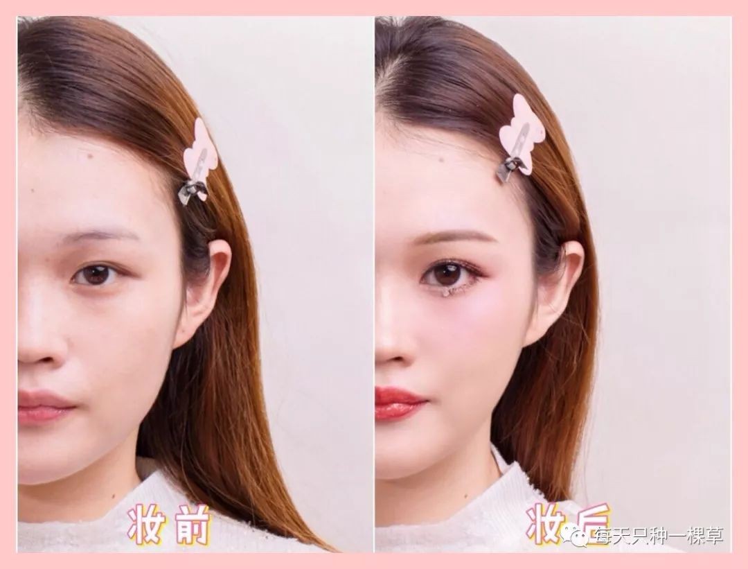 Duang~这个圣诞妆就完成得差不多啦,先看看半张脸的对比,啧啧啧,比月光还残酷……