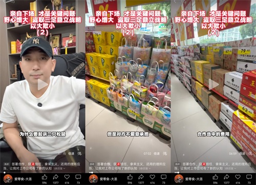 然而,这场商业联姻的“破裂”却并不平静——爱零食创始人唐光亮在收购终止后迅速通过社交平台发声,表示自己作为爱零食的创始人,有义务维持爱零食的品牌和商誉,所有分享的内容,我负法律责任。他在视频中直言“欺人太甚”,认为三只松鼠“反复压价”。