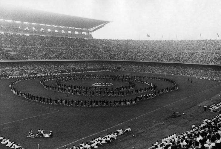 在当时的政治压迫下,加泰罗尼亚民众寻求独立的愿望也日益增生,而最能弘扬当地文化的新球场自然而然就成了他们活动的重要场所。19时刻,莱斯巴塞罗那舞蹈艺术团的1500名舞者顶着压力表演了最具当地特色的“萨达纳舞”,并同时放飞了一万只象征着自由和和平的白鸽。从这一天起,巴塞罗那俱乐部开启了新的纪元。