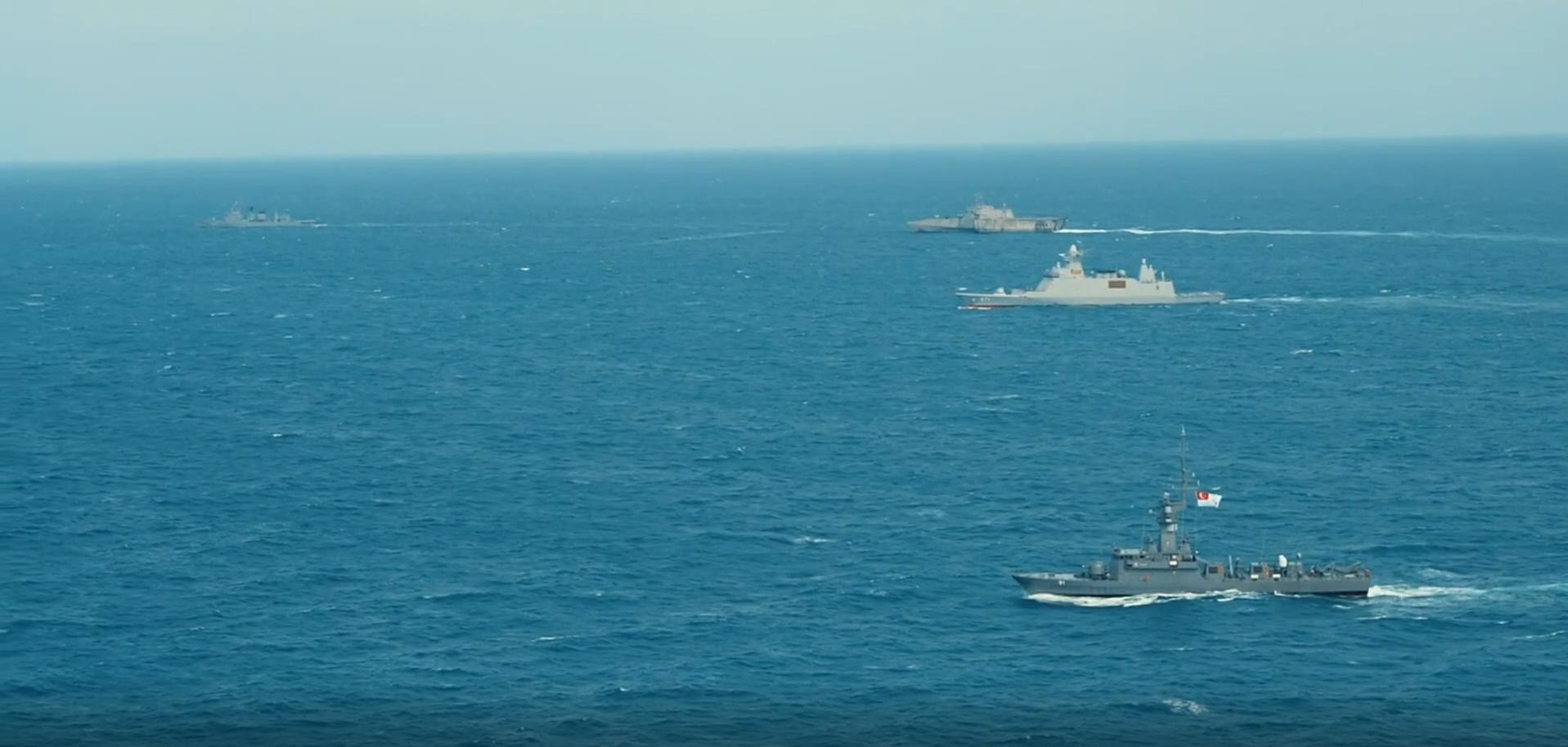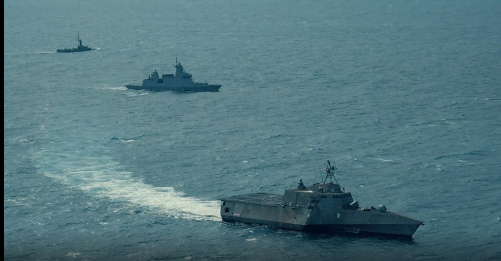另外老美的独立级濒海战斗舰和新加坡海军的无畏级巡逻舰也一并参演。