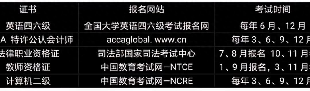 以下为大家整理了这些证书的报名时间和网站,请大家记得收藏。