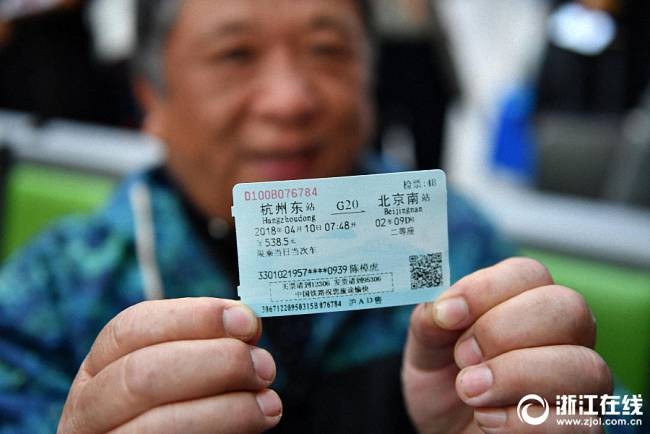 4月10日7时48分发车的G20次高铁,是首趟杭州始发开往北京的“复兴号”列车。